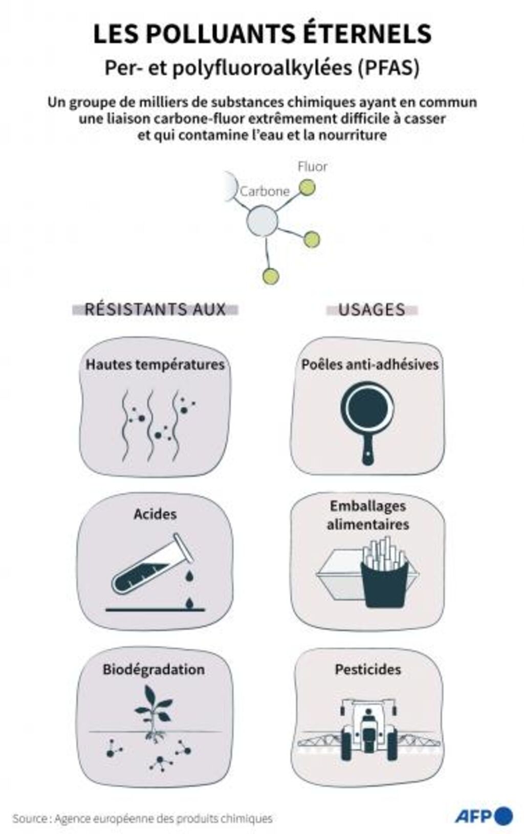 Ailleurs aussi, les PFAS se retrouvent de plus en plus visés par les autorités: en France, l'Assemblée nationale a approuvé la semaine dernière en première lecture l'interdiction de certains produits contenant des PFAS.