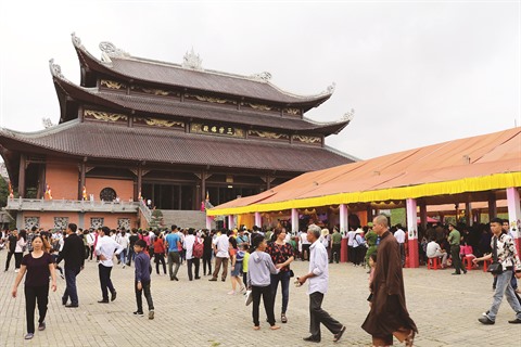 | Pèlerins à la pagode de Bai Dinh (province de Ninh Binh, Nord) lors du Têt. |