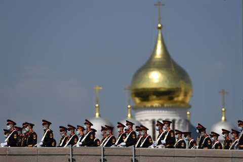 | Le général Nguyên Tân Cuong (centre), chef d'état-major général de l'Armée populaire du Vietnam et vice-ministre de la Défense, s'adresse aux soldats vietnamiens en préparation au défilé sur la Place Rouge à Moscou. |