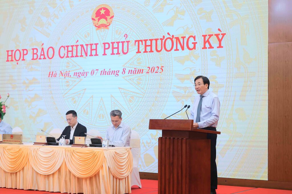 | Le ministre Tran Van Son, chef du Bureau du gouvernement, porte-parole du gouvernement, lors de la conférence de presse. |