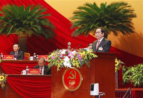 | Le président du Front de la Patrie, Trân Thanh Mân, s'exprime au XIIIe Congrès national du Parti, le 27 janvier à Hanoï. |