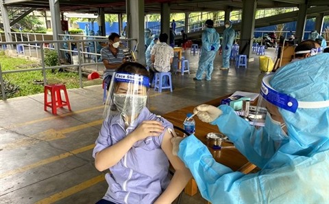 | Une ouvrière se fait vacciner dans la zone franche de Tân Thuân, Hô Chi Minh-Ville. |