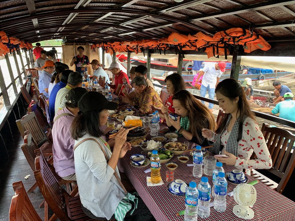 | Les touristes déjeunent sur un bateau de croisière. |