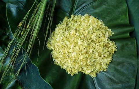 | "Cốm" - riz gluant jeune en granuels aplatis. |