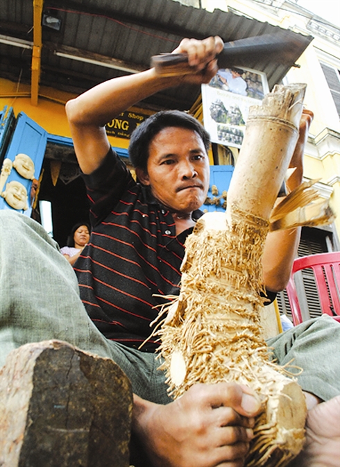 La rivière assagie Phuong Do part ramasser lui-même des pieds de bambou le long de la rivière Thu Bôn (en amont de la rivière Hoài). «À ce moment-là, l’idée était à peine venue, l’argent me faisait toujours défaut, j’ai dû me débrouiller seul pour sortir ces pieds de bambou de l’eau avant de les ramener chez moi», confie-t-il.