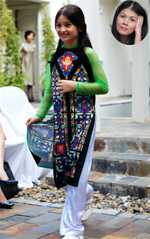 | Une fillette italienne en áo dài de la styliste vietnamienne Minh Hanh. |