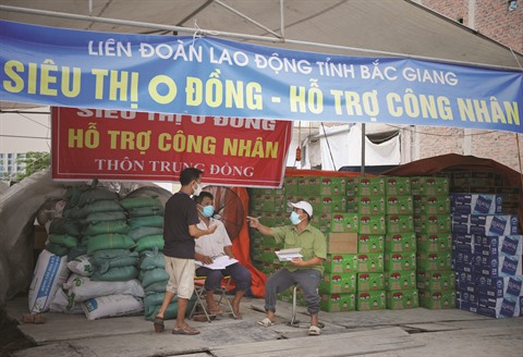 Grâce aux informations d’un groupe de travailleurs sur Internet, ils ont appris que la Confédération du travail de la province de Bac Giang avait ouvert un supermarché à zéro dông dans la zone touchée par le coronavirus.