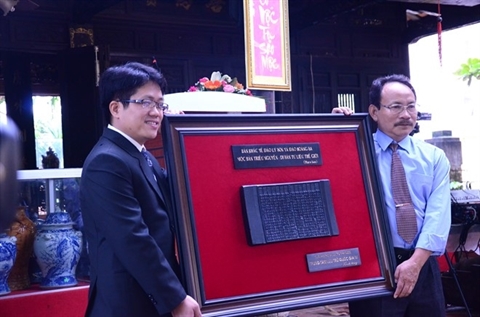 | Remise de la version de tablettes de bois de la dynastie des Nguyên sur l’île de Ly Son et l’archipel de Hoàng Sa (Paracel) au Musée de la province de Quang Ngai (Centre). |