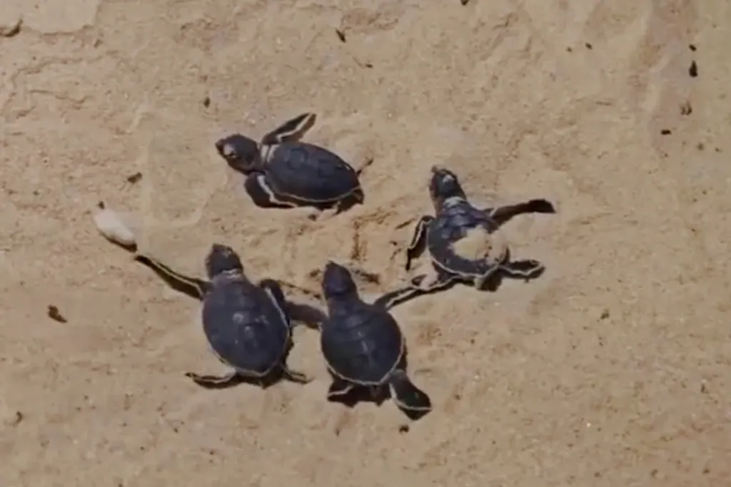 Les nouveau-nés, d'une longueur de 8 cm, sont sortis d'un nid de 103 œufs pondus par une femelle le 21 mai, qui est retournée à la mer ensuite, devenant ainsi la première femelle tortue à avoir niché sur la plage cette année.