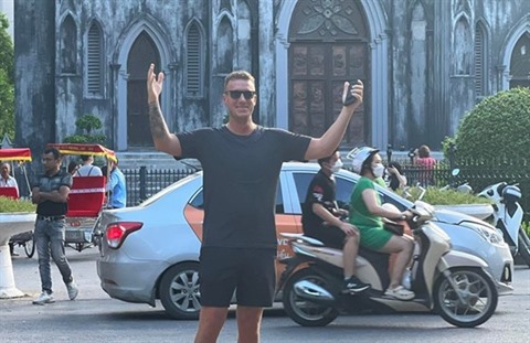 | Greg se sent très à l'aise avec le climat estival de Hanoï. Il a beaucoup d'énergie pour marcher partout dans la ville. |