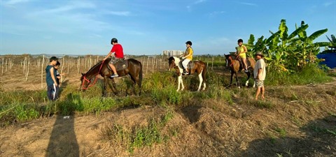 Dans Saigon Farm Horse (ferme aux chevaux de Saigon) de la commune de Phong Phu, district de Binh Chanh, Hô Chi Minh-Ville, l'une des activités que les enfants adorent est la balade à cheval dirigée par un dresseur, en passant par les pelouses, les routes de village, les champs d'herbes à l'aube ou au crépuscule.