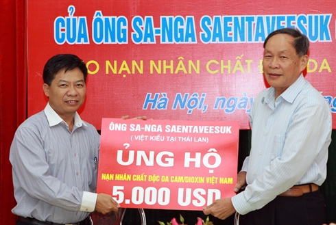 | Cadeau de 5. 000 dollars a été offert par un Viêt kiêu en Thaïlande aux victimes de l'agent orange au Vietnam. Photo : Nguyên Thuy/VNA/CVN |