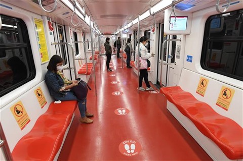| Des gens portent des masques et pratiquent une distanciation physique dans le métro à Milan, le 29 avril. |