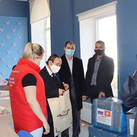 | Des vietnamiens résidant en Russie offrent des dons à des habitants locaux pour les aider à lutter contre l'épidémie de COVID-19. |