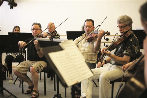 | L’Orchestre israélien «Camerata Jérusalem» joue des instruments du projet «Violons de l’espoir» lors d’une répétition pour un concert spécial réalisé sur les violons et les violoncelles de la collection d’Amnon Weinstein et son fils. |