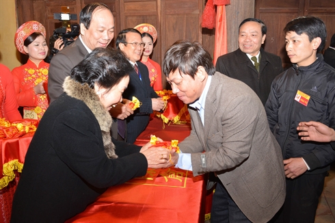 | La vice-présidente de la République, Nguyên Thi Doan, à la fête de la "Distribution des vivres du génie Trân", le 13 février au temple Trân Thuong, province de Hà Nam (Nord). |