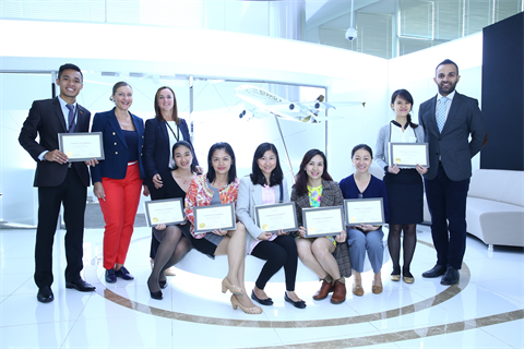 | Des représentants de voyagistes vietnamiens et d'Hala Abu Dhabi, lors de formations aux services de transit à Abu Dhabi d’Etihad Airways. |