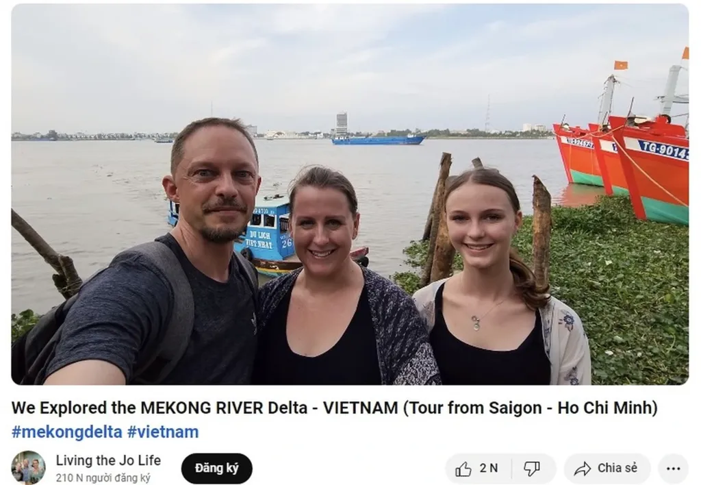 Dans la vidéo Nous avons exploré le delta du Mékong - Vietnam, qui a cumulé plus de 68.000 vues, la famille fait une excursion d'une journée cette région au cours de laquelle ses membres traversent de magnifiques champs de cocotiers et bananiers en vélo, font une promenade sur un chariot à chevaux ou encore en bateau à travers de petits canaux, boivent de l'eau de coco fraîche, regardent les habitants préparer des bonbons à la noix de coco et dégustent des spécialités locales au restaurant.