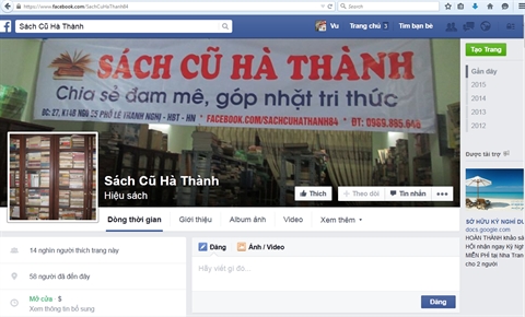 | La page Facebook sachcuhathanh84 est suivie aujourd’hui par plus de 14.000 personnes. |