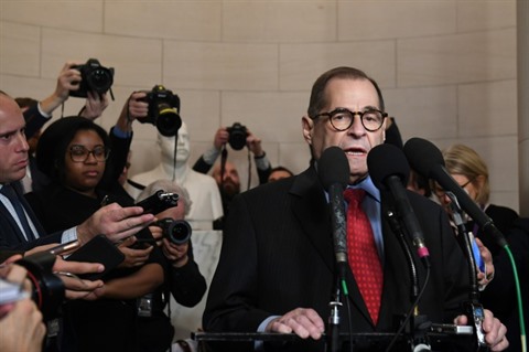 | Le président de la commission judiciaire de la Chambre des représentants, Jerry Nadler, parle à la presse après un vote préliminaire sur les articles de mise en accusation de Donald Trump le 13 décembre. |