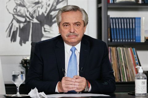 | Une photo fournie par la présidence argentine d'Alberto Fernandez annonçant, le 14 avril, de nouvelles mesures pour lutter contre la pandémie de COVID-19. |