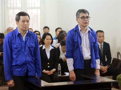 | Vo Quang Huy (gauche) et Tu Thành Nghia, lors de leur procès, le 22 mars à Hanoï. Photo: VNA/CVN |