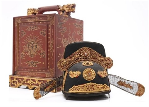 Ces deux antiquités sont un chapeau des mandarins des Nguyên (1802-1945), la dernière dynastie impériale du Vietnam, et une robe dite Nhât Binh.