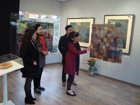 "Nous partageons cette passion pour l’art pictural sur tissus et travaillons sans compter pour réunir toutes les couleurs disponibles au Vietnam et en France. Les œuvres de Catherine étonnent les visiteurs de par leur virtuosité et les tissus utilisés. Pour ma part, je cherche des morceaux reflétant les images de la vie quotidienne puis j’utilise de la maroufle pour les coller afin de créer mon œuvre. Les peintures de Catherine sont abstraites. Elles sont porteuses de beaucoup d’idées sur divers thèmes comme la religion, l’environnement, des choses auxquelles elle est particulièrement sensible. Les visiteurs peuvent ainsi, aux travers de nos créations, voir les différences dans le style de deux artistes issues de deux pays", a indiqué Trân Thanh Thuc.
