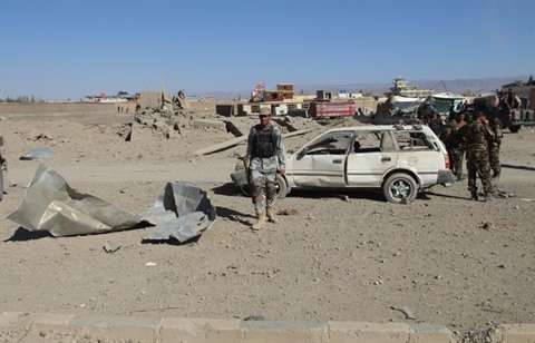 | Les forces de sécurité afghanes sur les lieux d'une attaque contre un centre de police, le 17 octobre à Gardez en Afghanistan. |