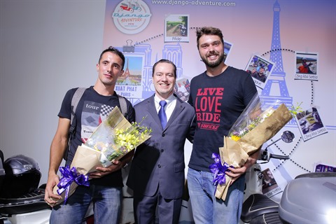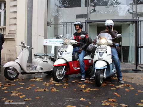 Au guidon de leurs deux scooters Peugeot Django 125 cm3, ces deux aventuriers ont parcouru 12.000 km et traversé 50 villes de plus d’une dizaine pays : Allemagne, Suisse, Italie, Slovénie, Croatie, Serbie, Bulgarie, Turquie, Inde, Myanmar, Thaïlande... Au départ le 29 août, en deux mois, ils sont finalement arrivés à Hô Chi Minh-Ville le 28 octobre dernier sains et saufs, juste à temps pour participer au Motoshow de Hô Chi Minh-Ville. C’est aussi le moment où la marque Peugeot Scooter arrivait officiellement sur le marché vietnamien.