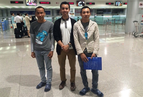 | Les deux pêcheurs (à gauche et à droite) ont atterri à l’aéroport international de Tân Son Nhât. |