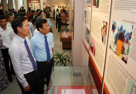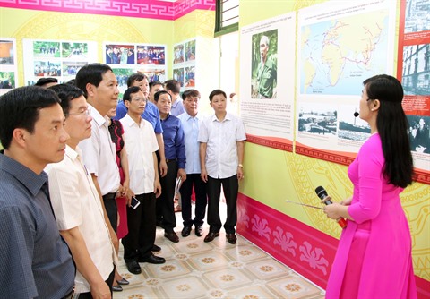 | Des visiteurs à l’exposition intitulée "Des exemples humbles mais nobles", le 16 mai, au musée Hô Chi Minh, à Hanoï. |