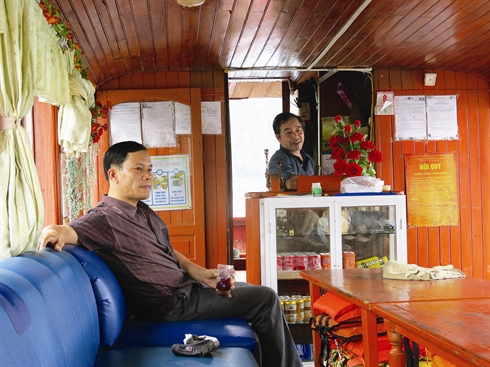 Le bateau à moteur de Thuyêt, qu’il a acquis il y a trois mois, peut accueillir jusqu'à vingt visiteurs en journée et quatre ou cinq personnes pour la nuit. Quand il ne s’active pas dans le petit espace qui lui sert de cuisine, Ngoc, lui, aime se reposer sur une des deux banquettes du petit navire en admirant le paysage, cigarette à la bouche. Trop vieux pour travailler seul, ce natif de Cat Bà possédait son propre bateau de tourisme qu’il a vendu pour rejoindre Thuyêt. Le petit homme à l’air malicieux ne parle pas anglais mais Denis, Vietnamien d’origine, fait la traduction. Au grès des criques et des îlots Élise et Denis découvrent l’histoire de la baie de Ha Long qui compte parmi les sept Nouvelles Merveilles naturelles du monde. «Ici, un bateau français s’est fait bombardé pendant la guerre», explique Ngoc.