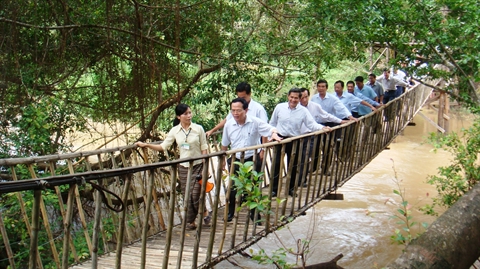 | Le pontde bambou traversant le fleuve Sêrêpok, un lieu que Ygông et Bya affectionnaient dans leur jeunesse. |