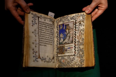| "Les Heures de Pierre Soppite et Marie Deschevert", manuscrit en latin, sur parchemin, avec 13 grandes miniatures peintes vers 1400 par le Maître de Luçon a été vendu 706.300 euros le 5 juin à Paris. |