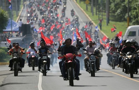 Des fidèles d'Ortega sont partis de Managua à bord de centaines de véhicules et motos, agitant des drapeaux rouge et noir du Front sandiniste de libération nationale (FSLN, gauche), le parti au pouvoir, en direction de Masaya.
