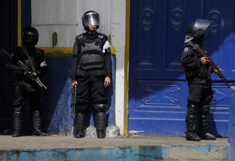 | Des forces de police déployées à Monimbo, près de Masaya, le 13 juillet 2018 au Nicaragua. |