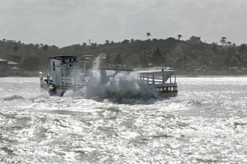 | Épave du bateau du Cavalo Marinho qui a fait naufrage près de l'île d'Itaparica dans l'État de Bahia, le 24 août. |