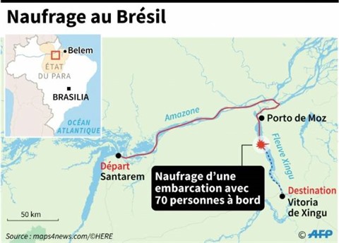 L'embarcation a fait naufrage mardi à 21h00 mardi 22 août (mercredi 23 août 00h00 GMT) sur le Rio Xingu, un affluent de l'Amazone, près du village de Porto de Moz.