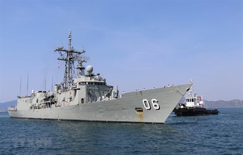 | Le navire HMAS Newcastle de la Marine royale australienne au port international de Cam Ranh, province centrale de Khanh Hoà |