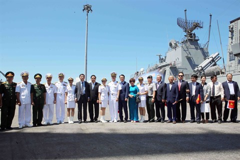 | Des officiers et marins de la Marine sud-coréenne et vietnamiens au port de Tiên Sa, le 18 septembre à Dà Nang. |