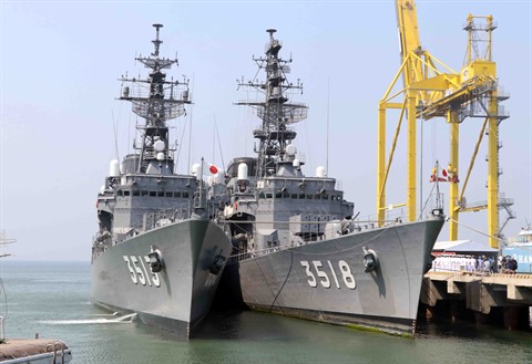 | Deux destroyers de la la Force maritime d'autodéfense japonaise, le 6 mars dans le port de Tiên Sa, à Dà Nang (Centre). |