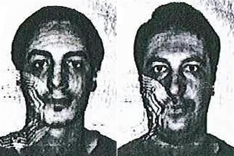 | Montage réalisé le 4 décembre 2015 à partir des photos de deux suspects, fournies par la police belge, recherchés dans l'enquête sur les attentats de Paris. |
