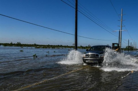| Des rues de Lake Charles, en Louisiane, inondées après le passage de l'ouragan Delta, le 10 octobre 2020. |
