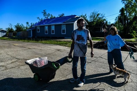 Sous le soleil et la chaleur qui ont suivi samedi matin 10 octobre le passage de Delta, cet homme est en quête d'essence pour son générateur. Son ancienne maison a été "totalement détruite" par Laura et il venait de s'installer dans son nouveau domicile.