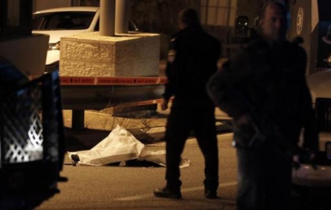 | Le corps du jeune palestinien abattu alors qu'il tentait de poignarder des policiers israéliens à un check point à Jérusalem le 25 avril. |