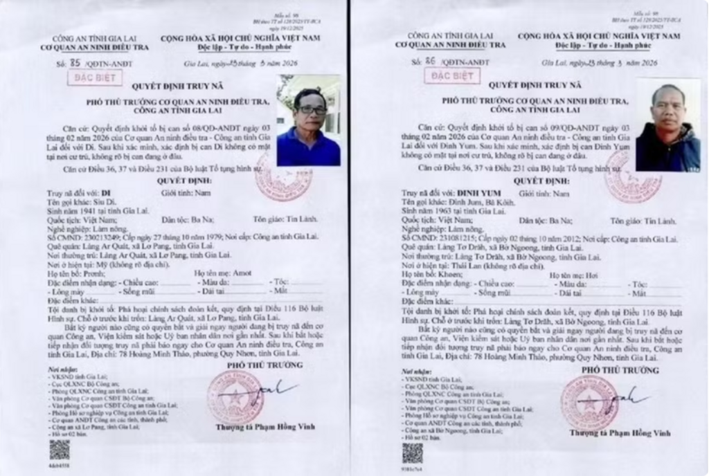 Ces mandats d’arrêt font suite à une enquête en cours concernant Roh et ses complices. Les enquêteurs ont décidé de poursuivre les deux suspects le 3 février 2026 et ont émis des avis de recherche officiels le 23 mars 2026, après avoir constaté qu’ils avaient tous deux fui leur domicile. Avant leur fuite, Di résidait dans le village d’Ar Quat, commune de Lo Pang, tandis que Dinh Yum vivait dans le village de To Drah, commune de Bo Ngoong.