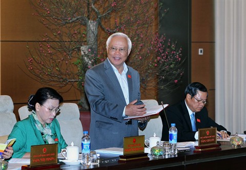 | Uông Chu Luu, vice-président de l'Assemblée nationale (debout), prend la parole lors de la réunion, le 11 janvier à Hanoï. |