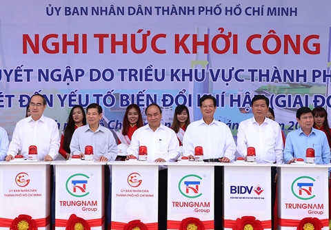| Cérémonie de mise en chantier du projet "Régler les inondations dues à la vive-eau et aux changements climatiques (première phase)", le 26 juin à Hô Chi Minh-Ville. |