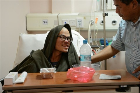 | Le randonneur taiwanais Liang Sheng-yueh (gauche), qui a été secouru après avoir été bloqué dans l'Himalaya pendant 47 jours, dans un hôpital de Katmandou, le 26 avril. AFP/VNA/CVN |